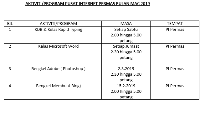 JADUAL AKTIVITI BULAN MAC 2019
