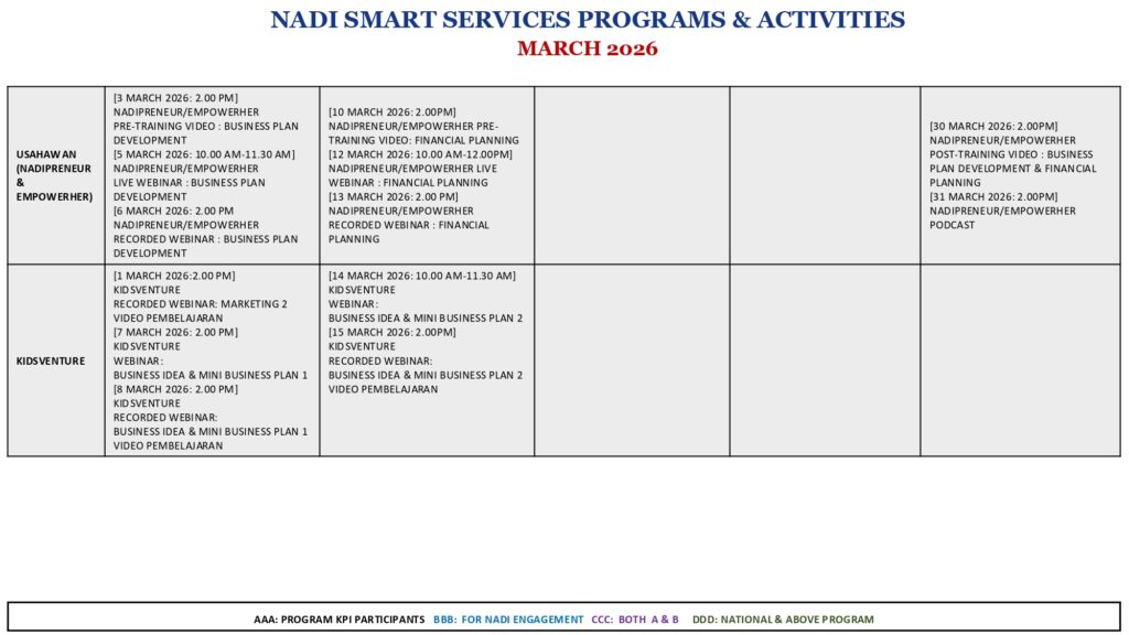 Jadual Aktiviti – Mac 2026