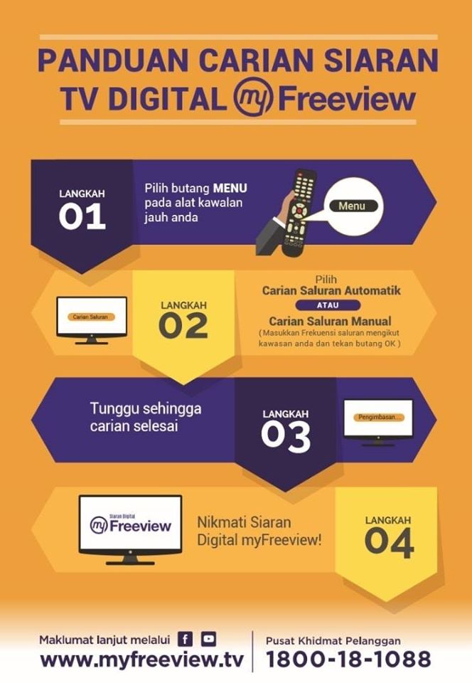 Sila pastikan dekoder atau IDTV anda berada di dalam keadaan ‘standby mode’. Layari www.myfreeview.tv atau hubungi 1800-18-1088 untuk bantuan lanjut.